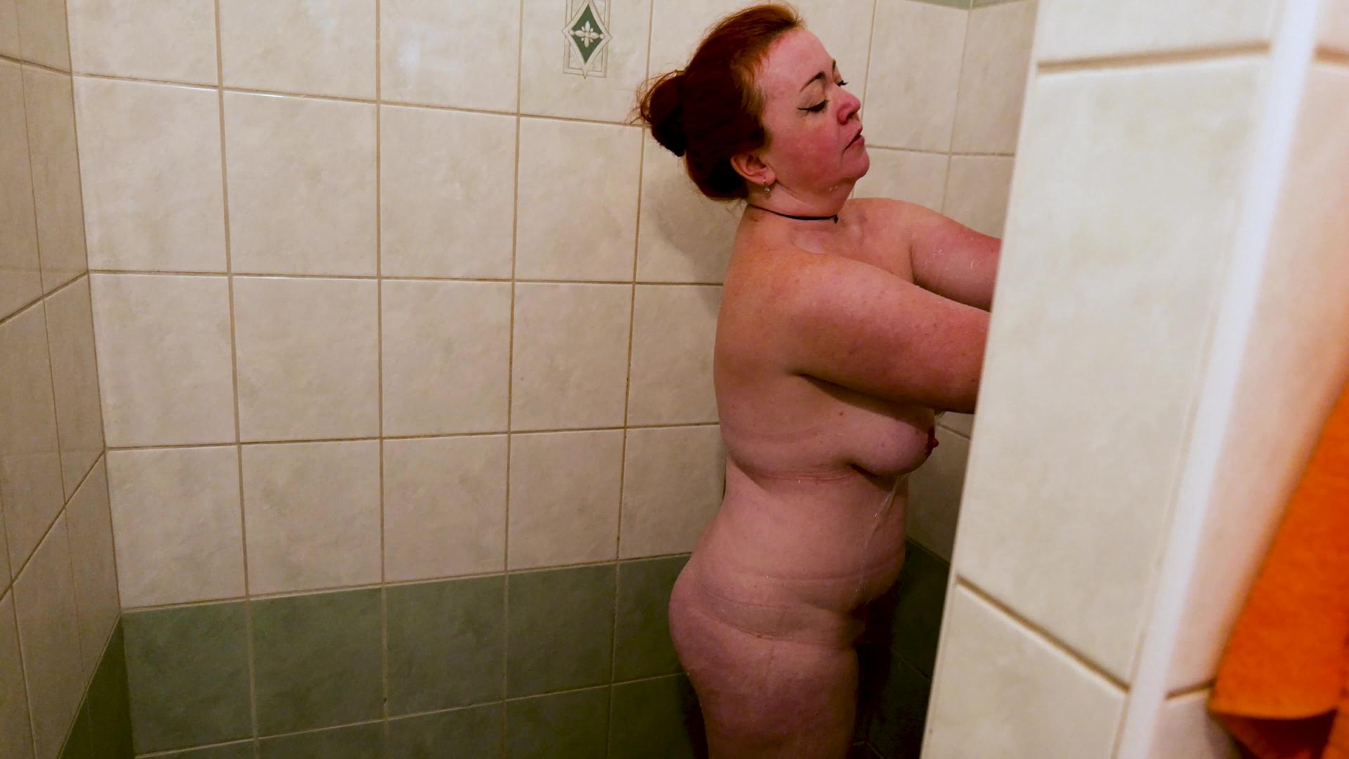 Backstage in the shower - Dragon Fruit pornstar prepares for a hard BDSM shooting